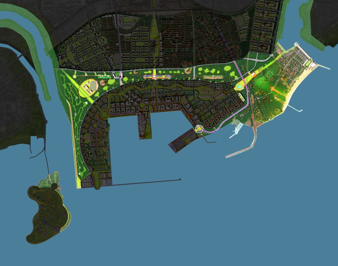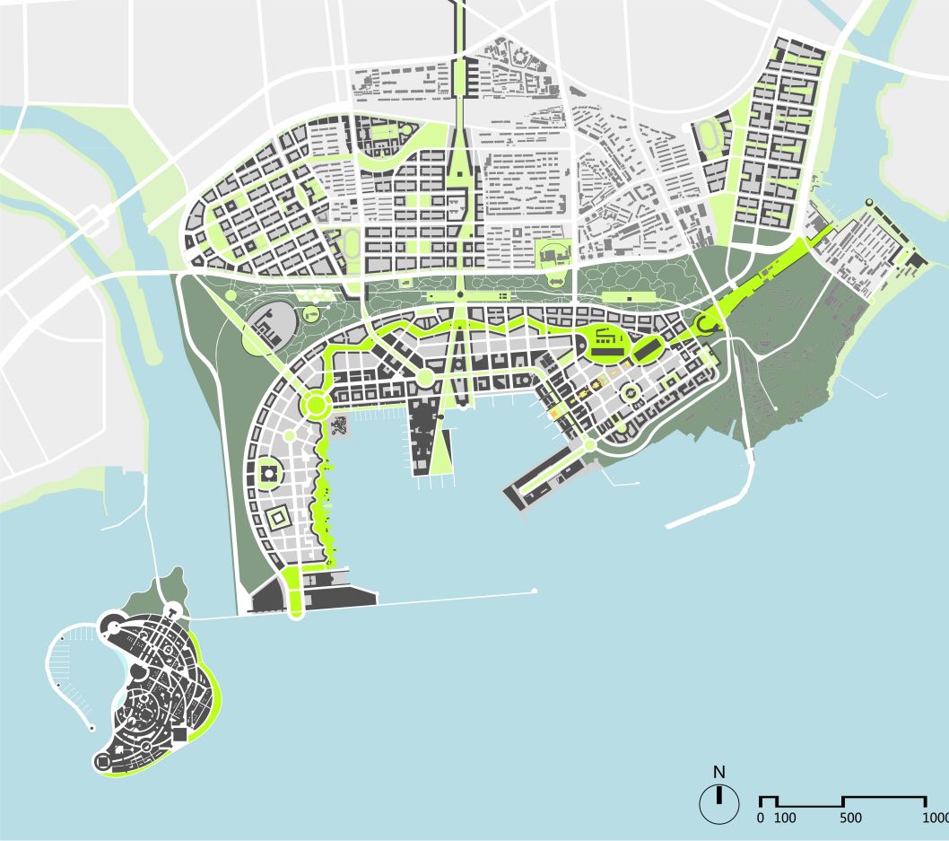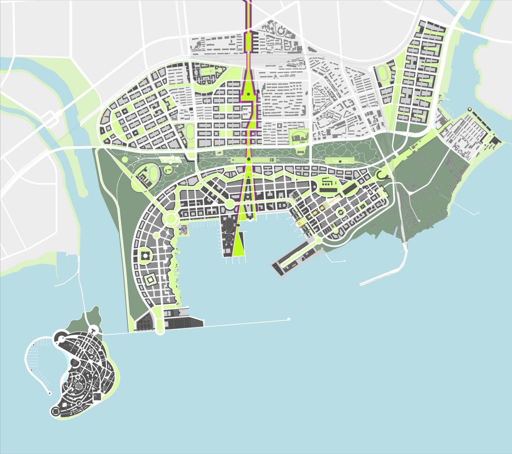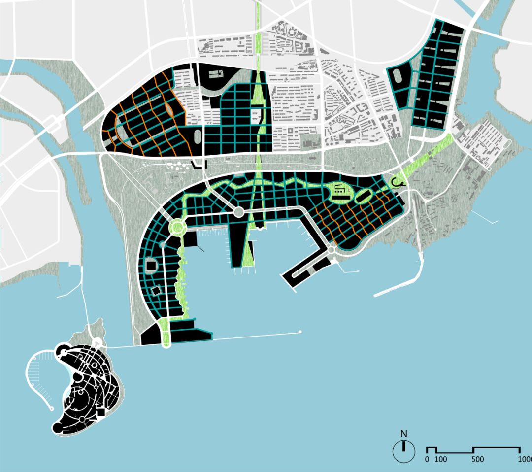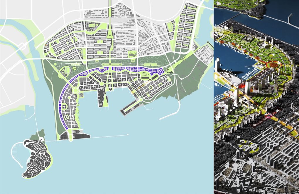 整个方案中有清晰的地区边际,创新的城市肌理,各具特色的城市中轴和门户空间,以及大气的海港尺度,并创造出丰富多元的空间体验。