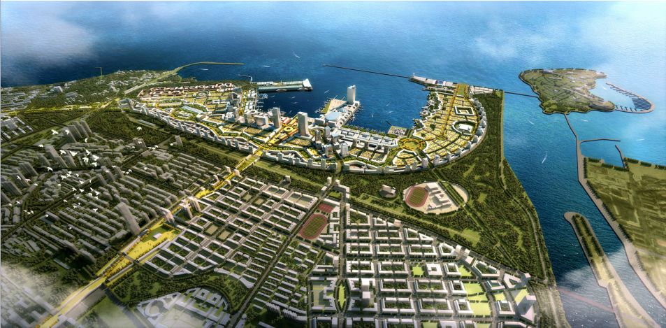 在重点设计起步区内,设置了多元的避风港湾空间,错落别致的港区门面形象,承古传今的起步区发展轴线。