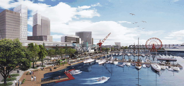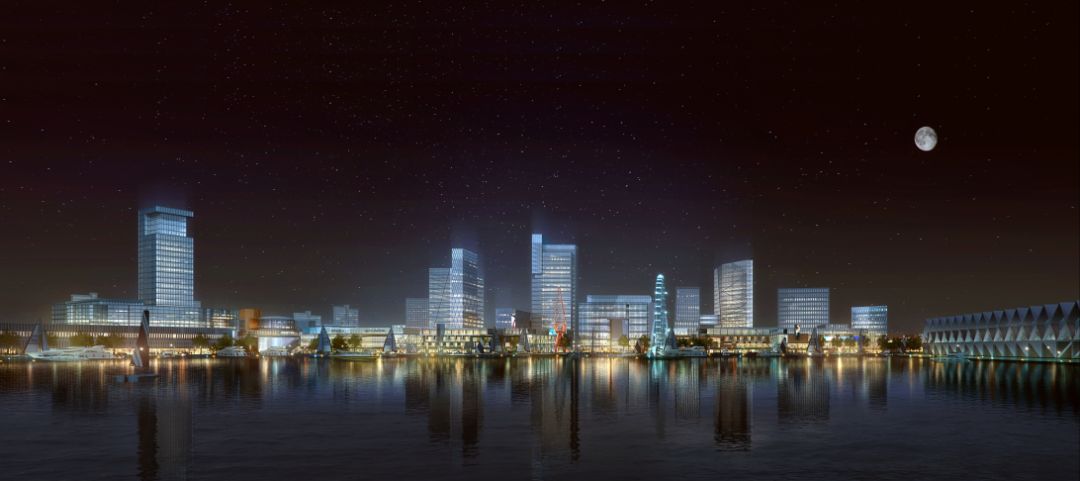 同时,打造了一个区域旅游服务平台,包括区域渡轮接驳码头、港滨休闲步道商业街区、商旅酒店集群和核心区夜景。